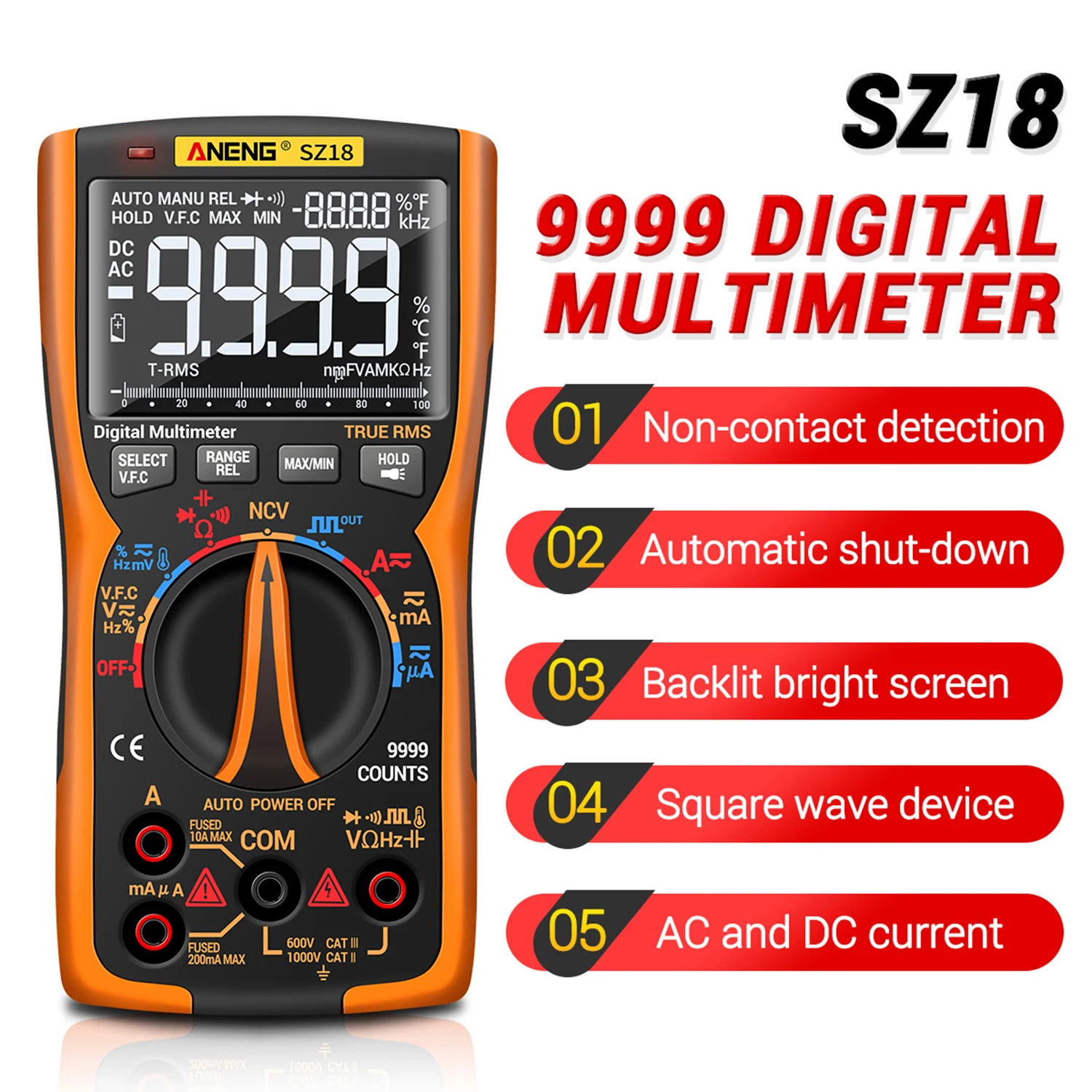 ANENG SZ18 Multimeter 9999 Counts T-RMS LCD AC/DC Voltage&Current Capacitance Diode Continuity Duty Cycle Frequency Resistance