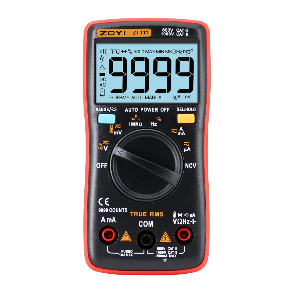 ZOYI ZT111 NCV True-RMS Digital Multimeter Auto Range 9999 counts Temperature Back light AC/DC Voltage Ammeter