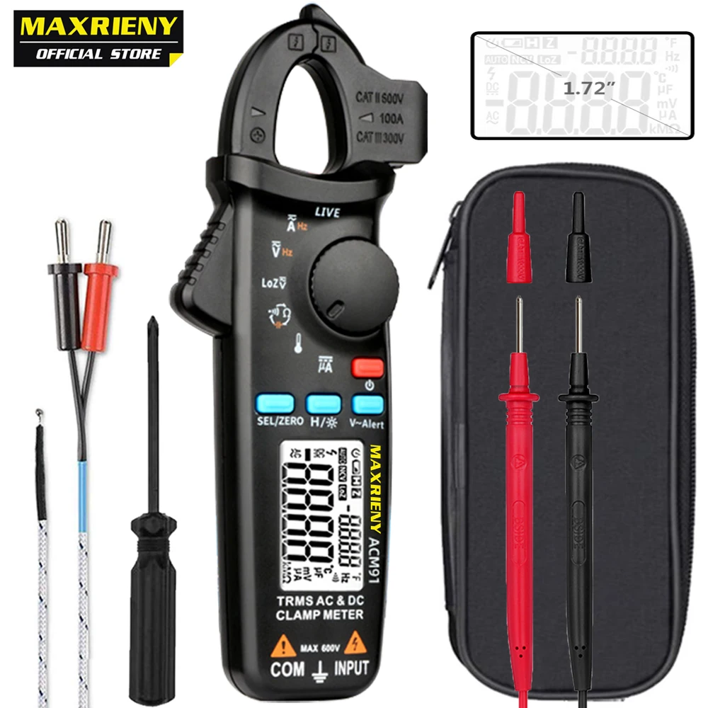 MAXRIENY ACM91 Digital Clamp Meter True RMS Mini DC AC Current Voltage Auto Range Temperature Capacitance Ohm Tester Multimeter Good