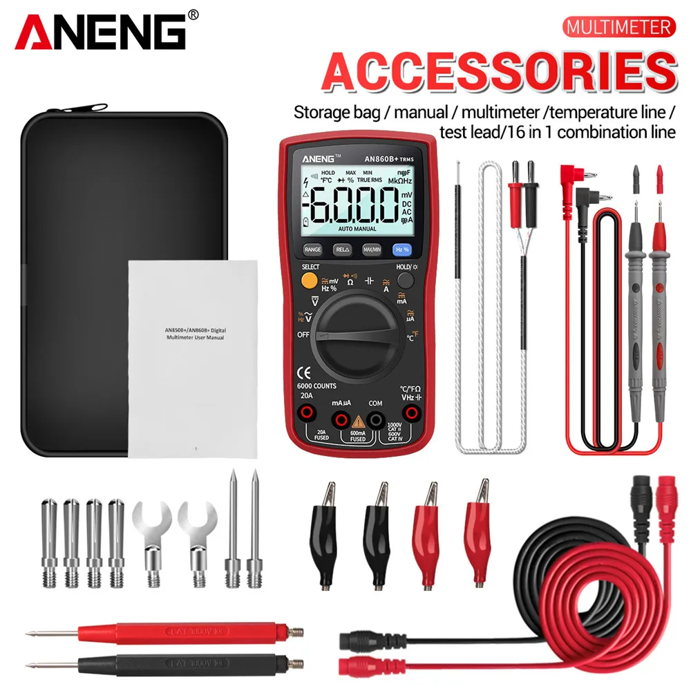 AN860B+ Digital Multimeter AC/DC 6000 Counts True RMS 20A Current Profesional Tester NCV Multimetro with Thermocouple ANENG