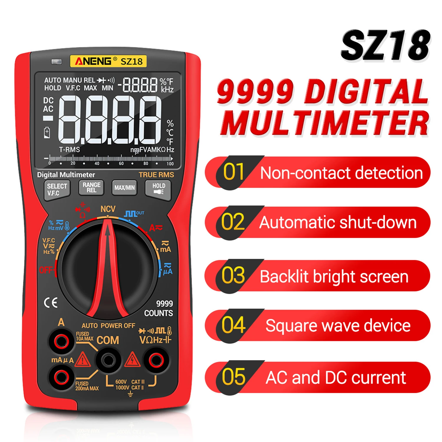 Buy SZ18 Digital Multimeter 9999 Professional True RMS Analog Tester Multimetro DIY Transistor Capacitor NCV Testers Lcr Meter and You will Save USD 42.96 or 58%, Because You Just Pay for 31.11 not Full Price for 74.07